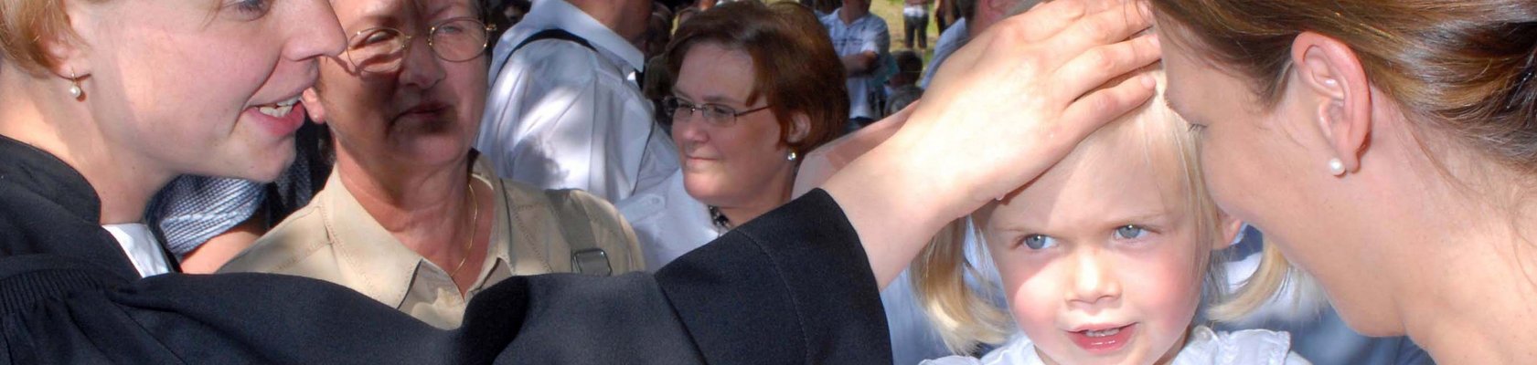 Mit der Taufe wird ein Mensch in die christliche Gemeinschaft aufgenommen und erhält den Segen Gottes. Durch die Taufe entsteht ein Band, das Mensch und Gott miteinander verbindet. Das Element der Taufe ist das Wasser. Dreimal gießt der Pfarrer oder die Pfarrerin Wasser über den Kopf des Täuflings. Alles, was den Menschen von Gott trennt, wird mit der Taufe symbolisch abgewaschen.